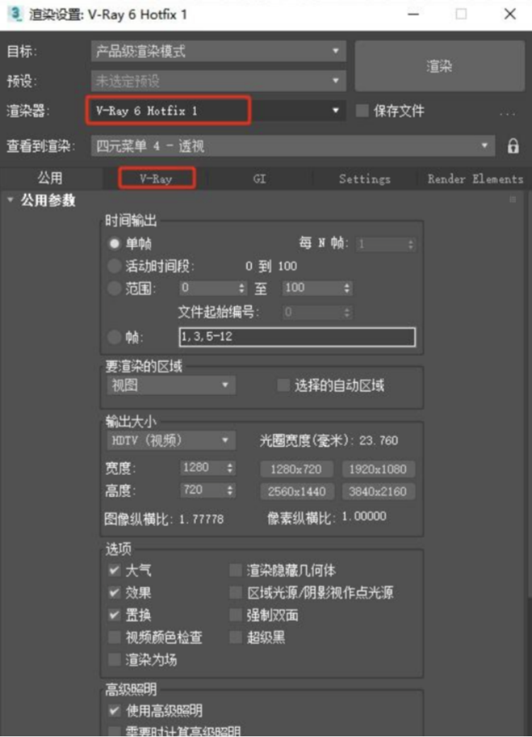 - 确认渲染器类型:在渲染设置面板中,切换到「指定渲染器」选项卡,确保当前选定的渲染器为「V-Ray 渲染器」(若未选中,点击下拉菜单切换即可)。