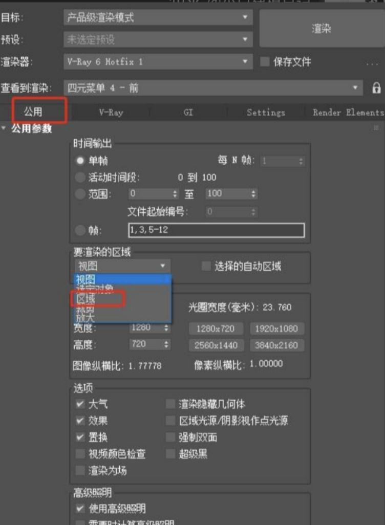 - 设置渲染区域类型:切换到「公用」选项卡,在「输出大小」下方找到「要渲染的区域」下拉菜单,点击展开后选择「区域」(部分版本显示为「Region」)。