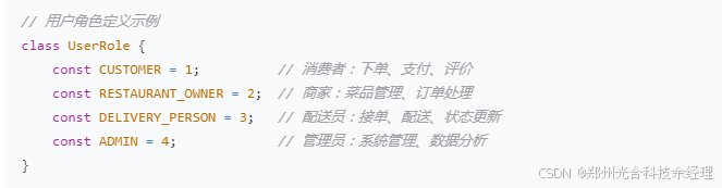 在现代外卖跑腿系统中,完善的用户角色管理是系统稳定运行的基石。系统需要同时服务于消费者、商家、配送员和管理员四大核心角色,每个角色都有其独特的权限和功能需求。