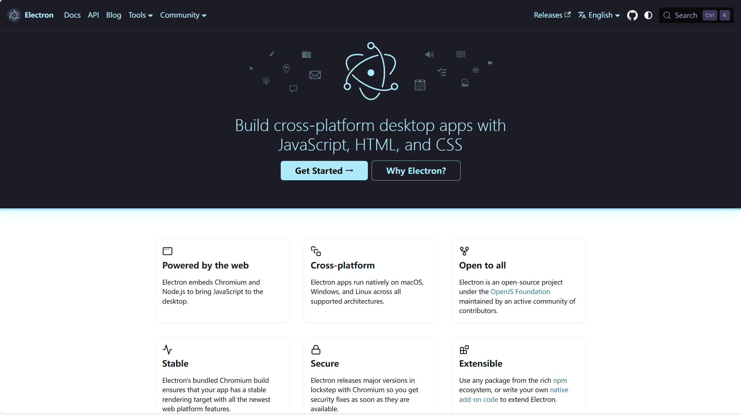 - 官网:Build cross-platform desktop apps with JavaScript, HTML, and CSS | Electron
