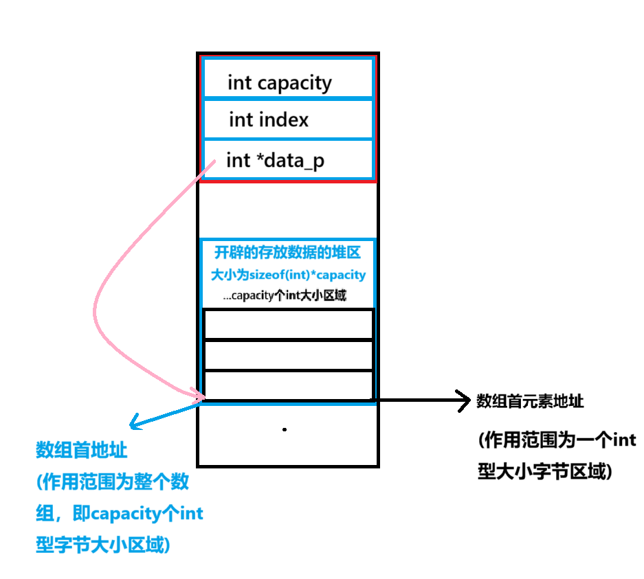 int *data_p; //指向开辟的堆内存的首地址,作用范围为开辟的单个元素范围