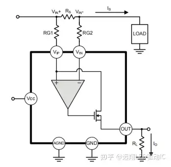 (VIN+ - VIN-)等于IS×RS,输出电压(OUT)等于IO x RL。本应用中高端点电流测量的最终传递函数为: