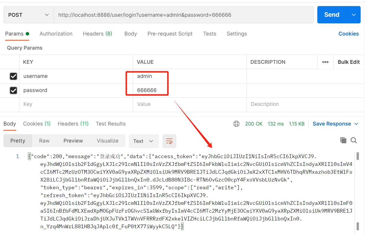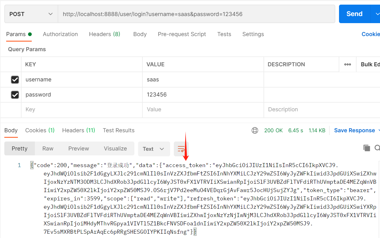 ①.访问http://localhost:8888/user/login?username=saas&password=123456进行登录