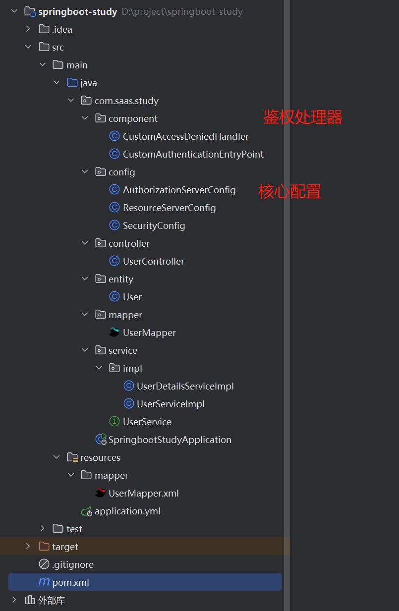 5.在study下面新建各种包名,在resources下面新建mapper文件夹,编写相应的代码