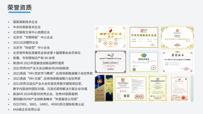 10年发展,酷雷曼累计取得40余项软著专利,荣获世界VR产业大会、新浪VR等20余项VR领域权威奖项。拥有ISO9001等4项ISO国际管理体系认证,通用航空、网络文化、广播电视节目制作等多项行业相关业务经营许可证,累计服务终端客户超过数十万。