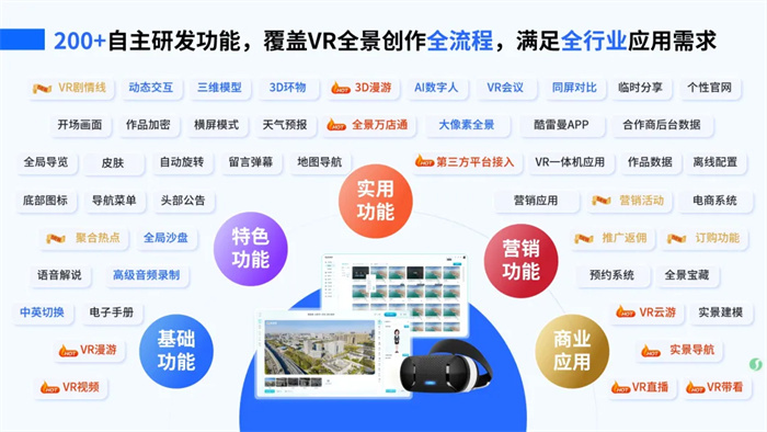 VR全景拥有360°全景呈现+交互体验,让线上场景拥有线下般的真实感,并且能够让企业省去搭建实体场景的成本,省去实地考察,差旅奔波的时间和费用,大幅提升决策和执行的效率,能跨越千里,实现"面对面"的沟通协作,让社交、办公更真实,更有温度,具有不可替代的核心优势。