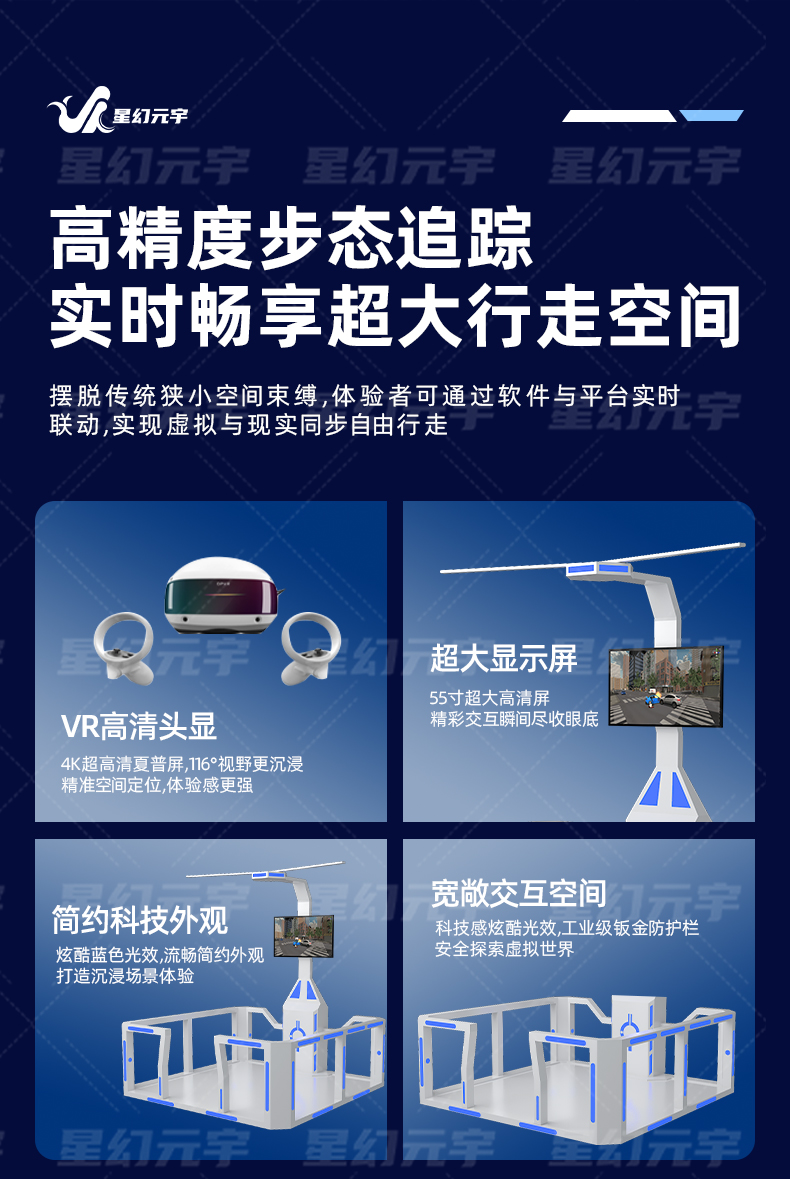 而 VR 党建、施工安全行走平台,则带着 2500mm×2500mm 的宽敞空间,6.5㎡的占地足以让体验者自由转身,稳稳承载起一场场沉浸式学习。