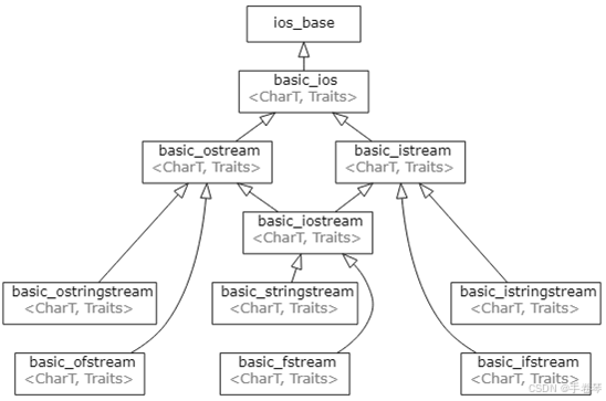 class basic_ostream : virtual public std::basic_ios<CharT, Traits>