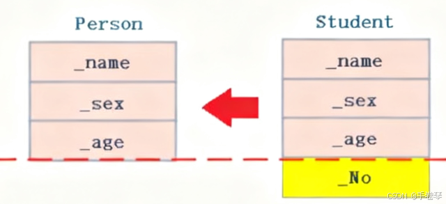 Person是基类,也称作父类,Student是派生类,也称作子类。