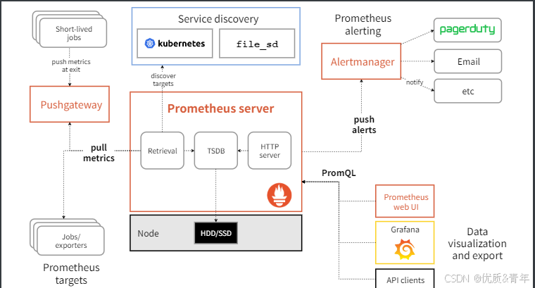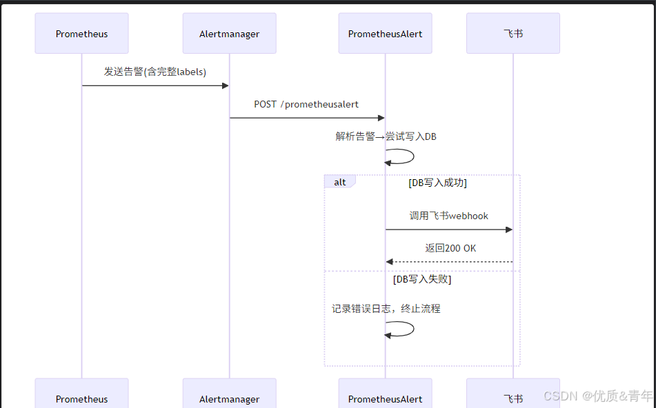 从官网的架构可以看出alertmanager的作用是接收Prometheus的告警通知然后再通过webhook发送到第三方媒介如飞书、钉钉。由于每个媒介的webhook接口是不一样的故可以通过Prometheusalert第三方开源的webhook集成器来完成消息的发送