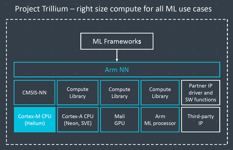 1、Arm Helium技术用于Cortex-M内核的M-Profile矢量扩展,为其提供高达15倍的机器学习性能和高达5倍的信号处理能力,这样一来,我们可以继续使用M内核芯片,而无需采用更高性能的处理器架构。
