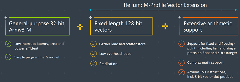 2、Helium和Neon(用于Cortex-A系的高级SIMD技术)具有相似性,但Helium专为单片机的高效信号处理性能而设计。