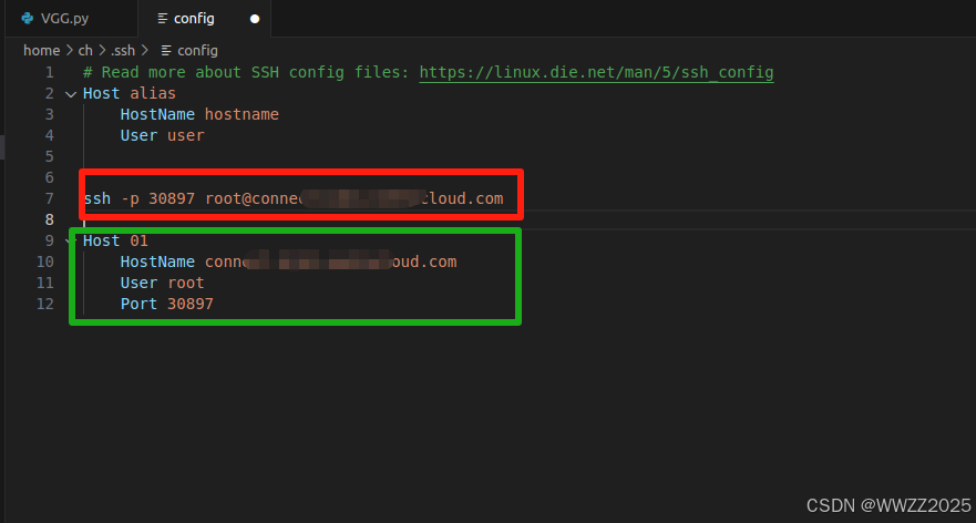 复制下来是红色框的信息,根据红色框编写绿色部分内容(其中01序号自定),删除红框内容并保存。