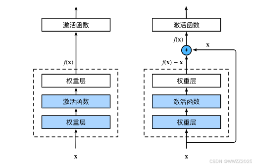ResNet残差块是将上一层的输出和经过这层学习后的输出求和作为这一层的输出。