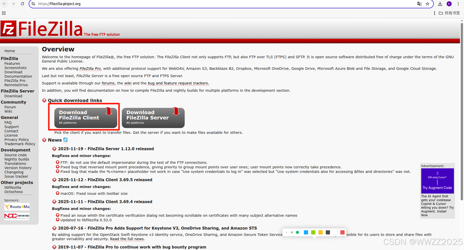 (1)下载安装FileZilla,链接:https://filezilla-project.org/