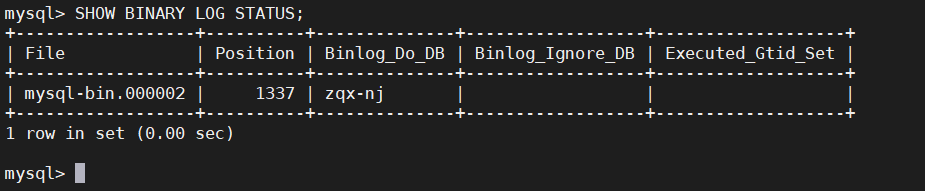 # 锁定数据库(只读),防止数据变更 FLUSH TABLES WITH READ LOCK; # 查看主服务器状态,记录File和Position值,用于从库复制参数使用 SHOW BINARY LOG STATUS;