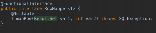 RowMapper 是⼀个接⼝,作⽤是解析结果集,将 JDBC 查询出的 ResultSet 对象转换成对应的 POJO。