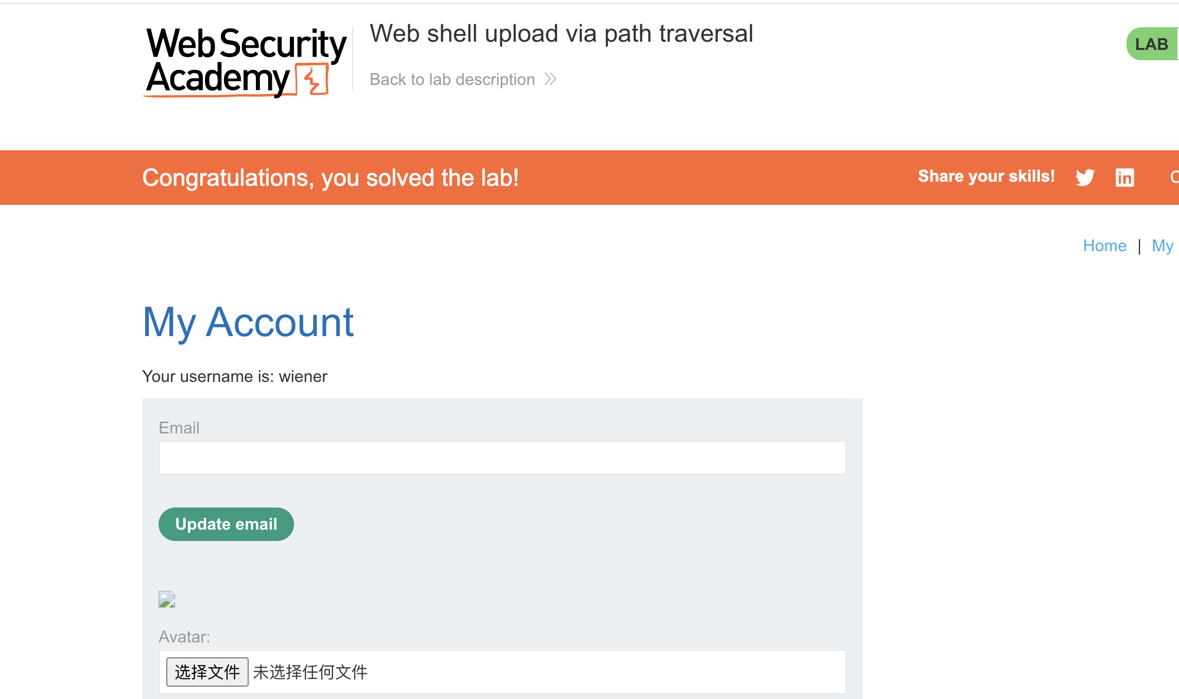 /写成 URL 编码格式%2f,我们成功骗过了过滤器,文件实际上被保存到了/files/avatars/的上一级目录,即/files/exploit.php。