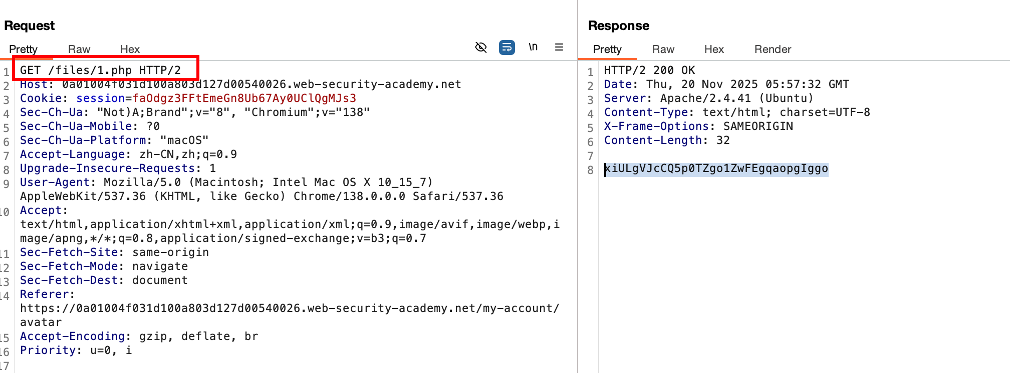 GET /files/exploit.php HTTP/1.1 Host: [你的靶场ID].web-security-academy.net ... -