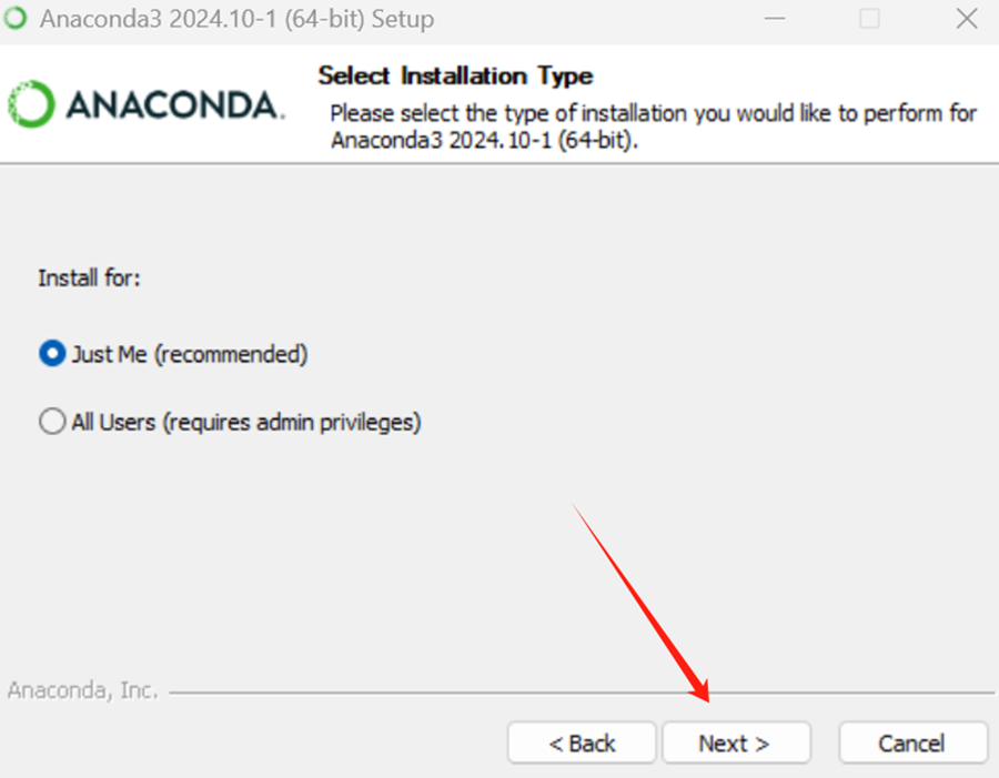 注意!!!:由于Anaconda安装文件较大,强烈建议不要安装在C盘
