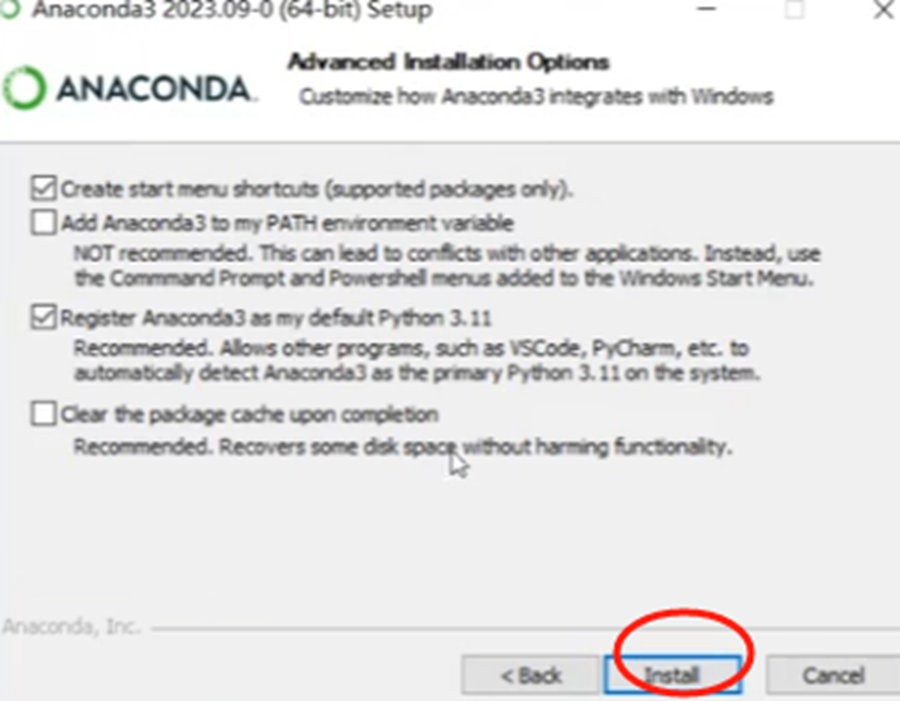 高级选项设置:保持默认勾选项,点击【Install】开始安装