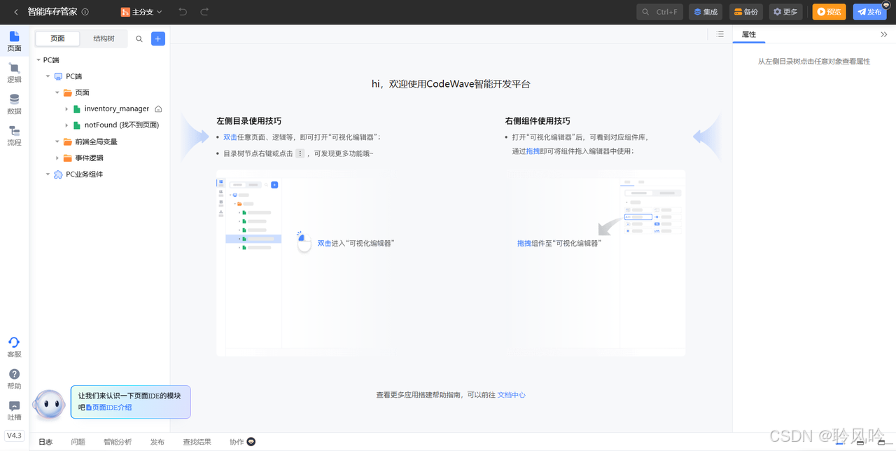 记得我第一次在CodeWave官网上登录后,就会给我们一些新手指南,即使是小白跟着这些指南也可以轻松的可以创建第一个应用。