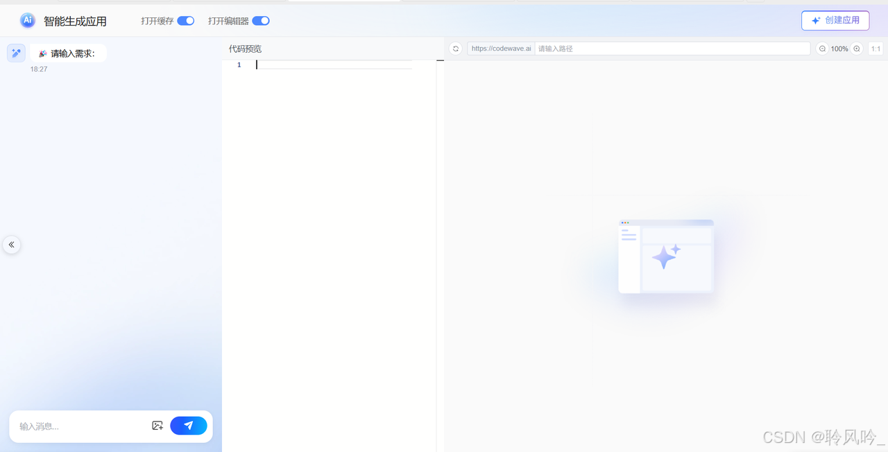 点击 "智能生成应用" 按钮后,我进入了一个简洁而强大的界面。
