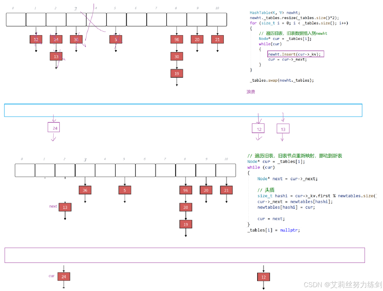 // // 遍历旧表,旧表数据插入到newht