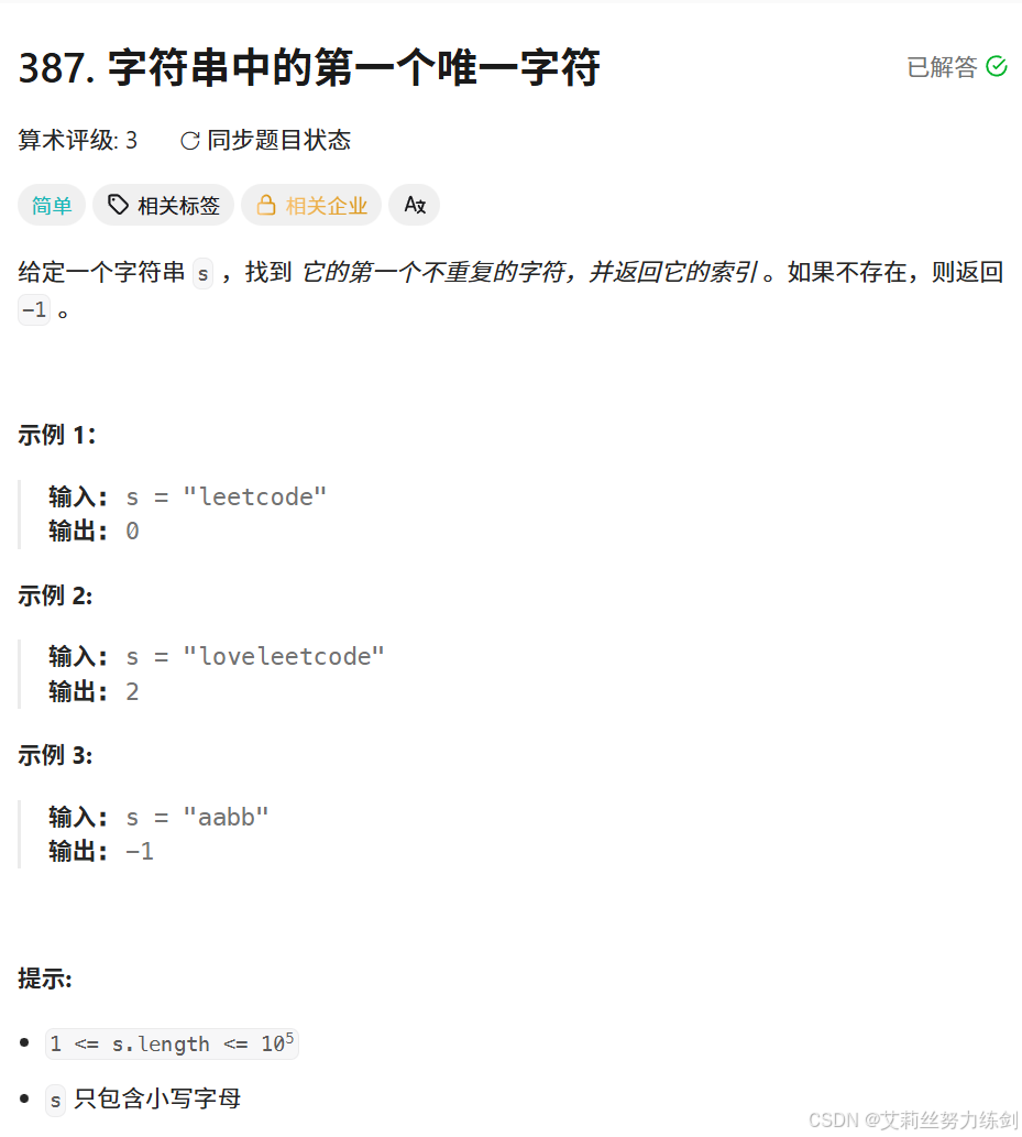 [2.2 示例:字符串中的第一个唯一字符](#2.2 示例:字符串中的第一个唯一字符)