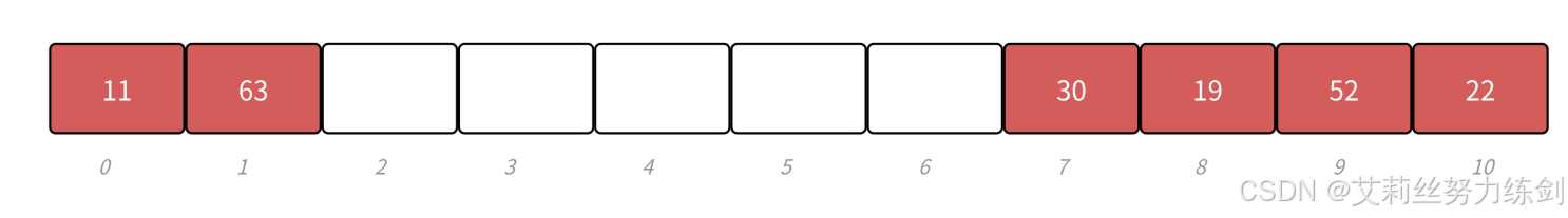 当关键字的范围比较集中时**,直接定址法是非常简单高效的方法**:比如一组关键字都在[0,99]之间,那么我们开一个100个数的数组,每个关键字的值直接就是存储位置的下标。再比如一组关键字值都在[a,z]的小写字母,那么我们开一个26个数的数组,每个关键字acsii码-aascii码就是存储位置的下标。也就是说直接定址法本质就是用关键字计算出一个绝对位置或者相对位置。这个方法我们不仅在计数排序部分用过,在string部分的OJ题目那里也用过了。