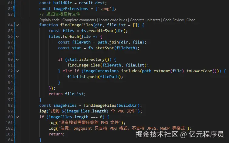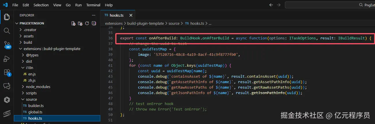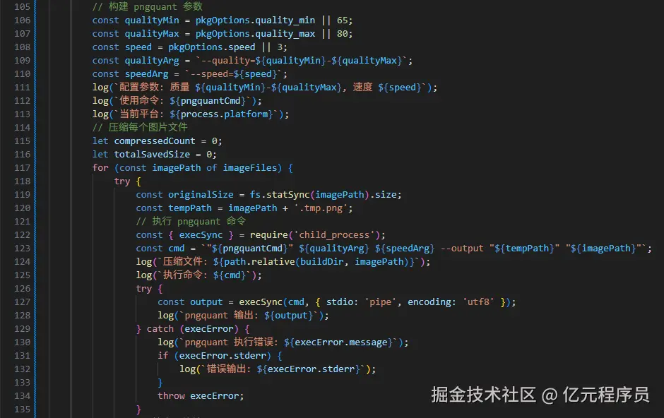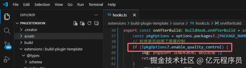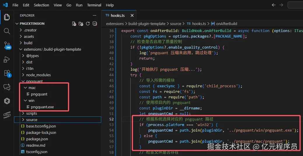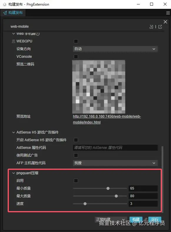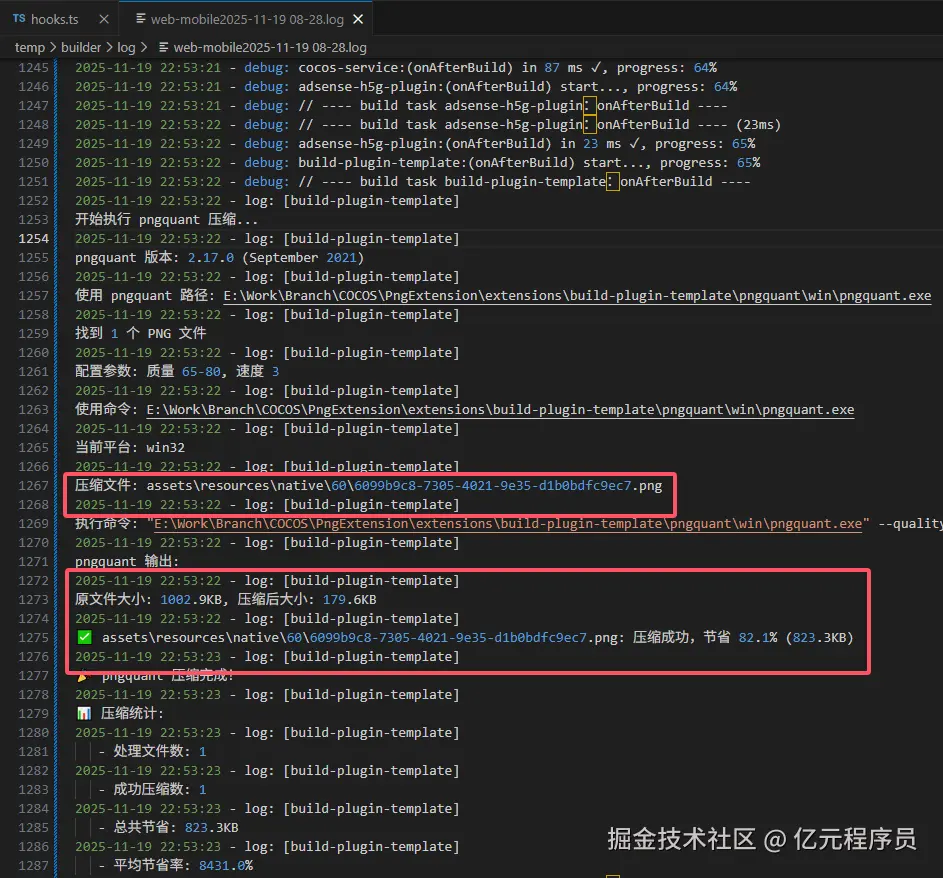 界面 控制添加完之后,我们需要把pngquant压缩植入到构建完成的钩子(onAfterBuild)里,使其构建完成后自动按照配置的参数进行压缩。