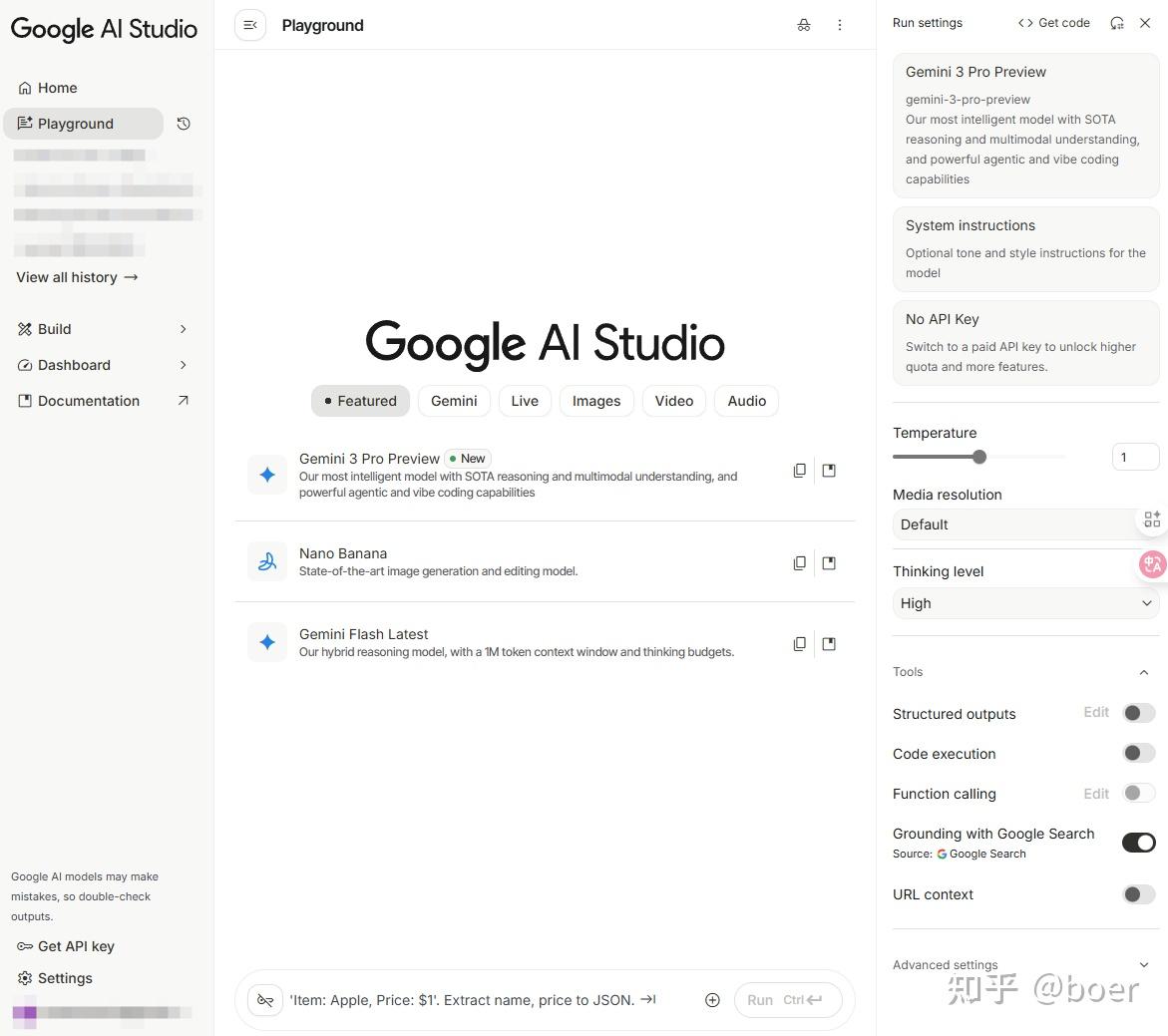 Goolge 最新模型 Gemini 3 pro 已经可以在 Google AI Studio 免费试用,但是免费额度用量有限。