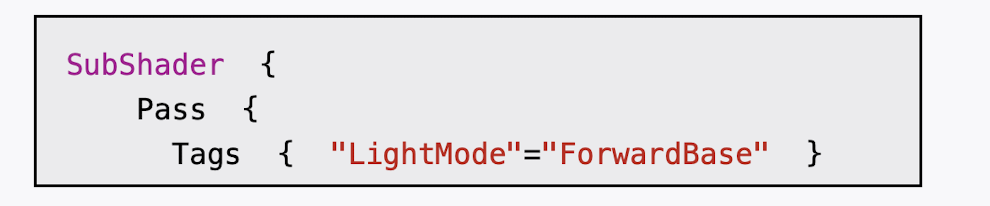 (3)然后,我们在SubShader语义块中定义了一个Pass语义块,并在Pass的第一行指明了该Pass的光照模式: