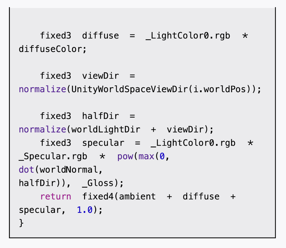 fixed3 halfDir = normalize(worldLightDir + viewDir);