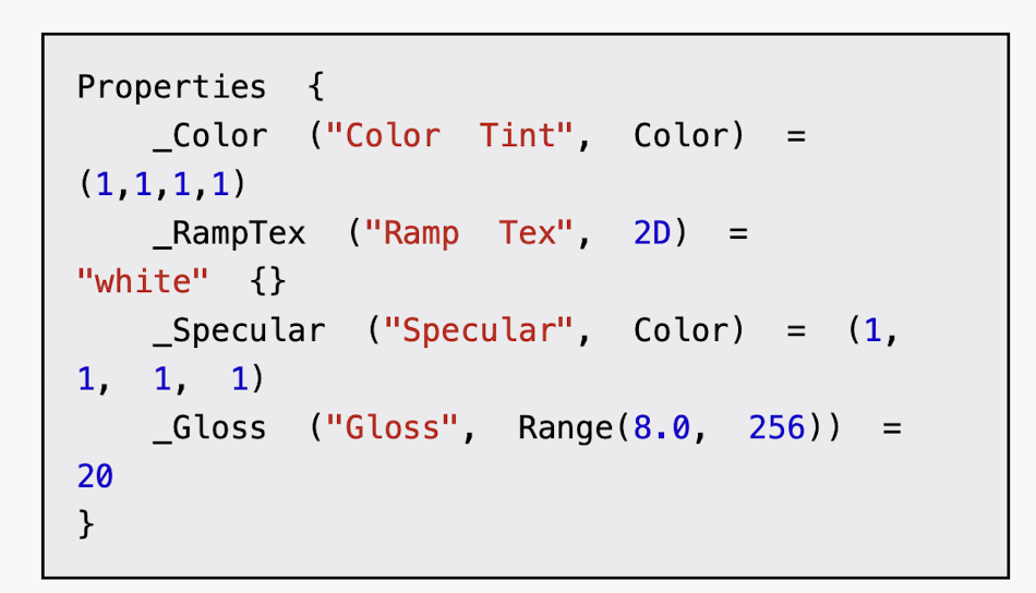 (2)我们在Properties语义块中声明一个纹理属性来存储渐变纹理: