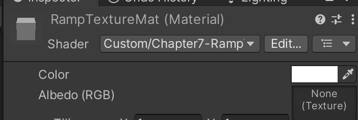 (3)新建一个Unity Shader。在本书资源中,该Unity Shader名为Chapter7-RampTexture。把新的Unity Shader赋给第2步中创建的材质。