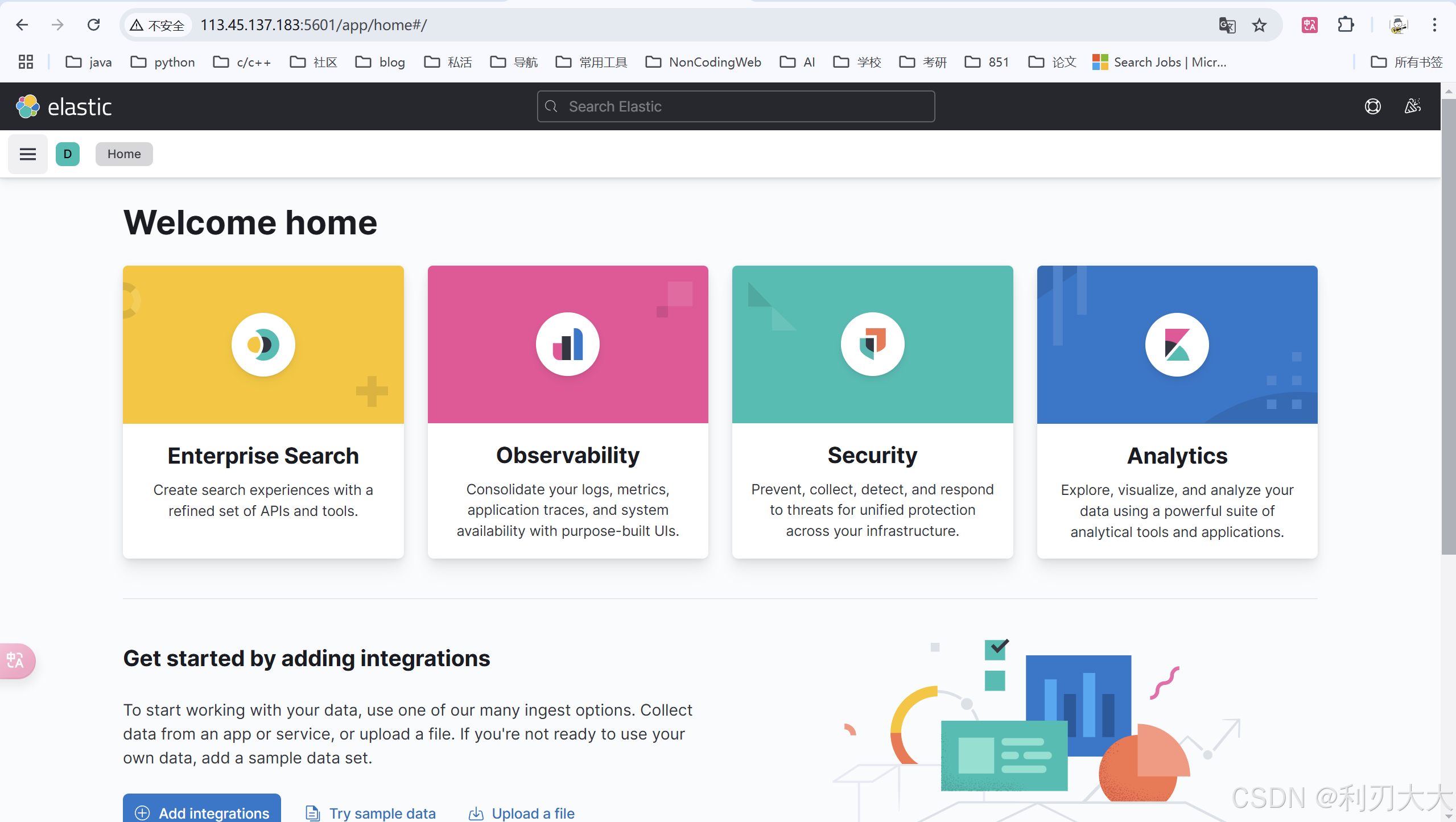 启动服务后,就可以在浏览器中访问 Kibana,通常地址是 http://ip地址:5601。