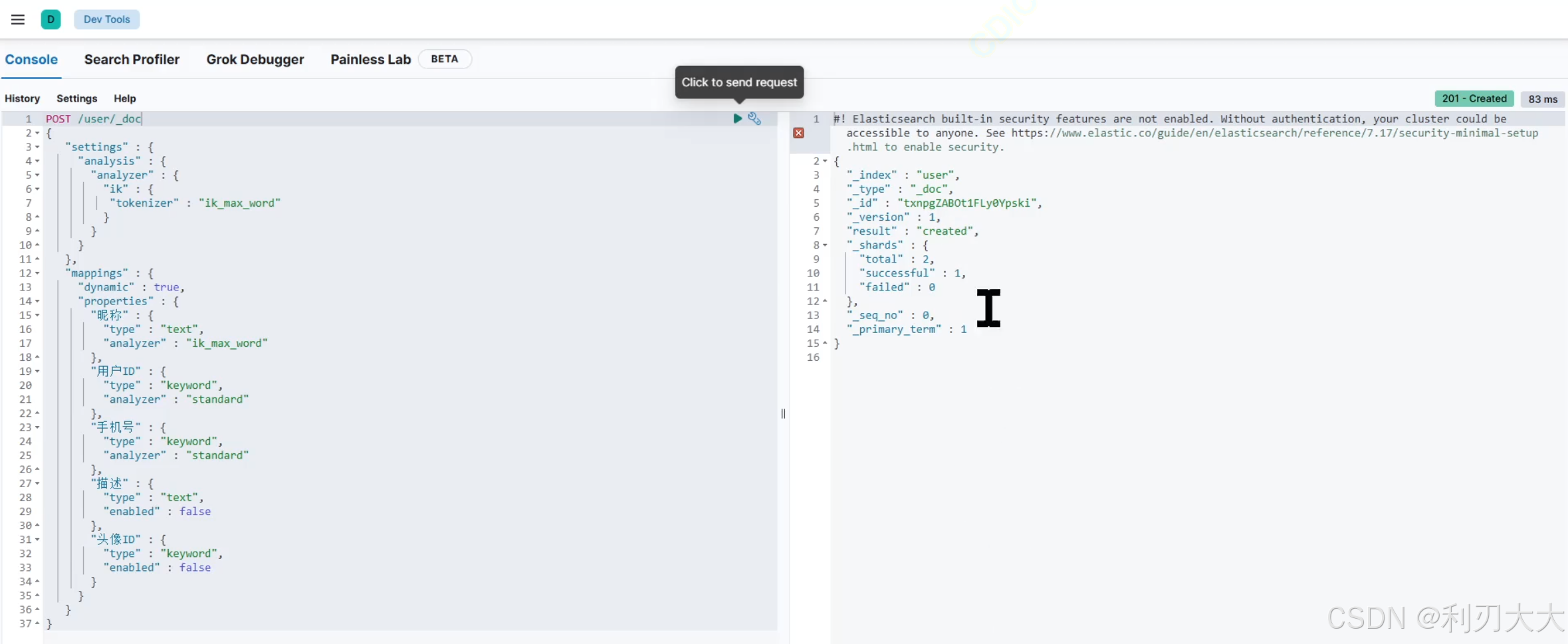Kibana 提供了一个控制台插件 Dev Tools ,允许用户直接与 Elasticsearch 的 REST API 交互,执行查询、插入、更新和删除数据等操作,我们这里也主要用的就是这个功能!