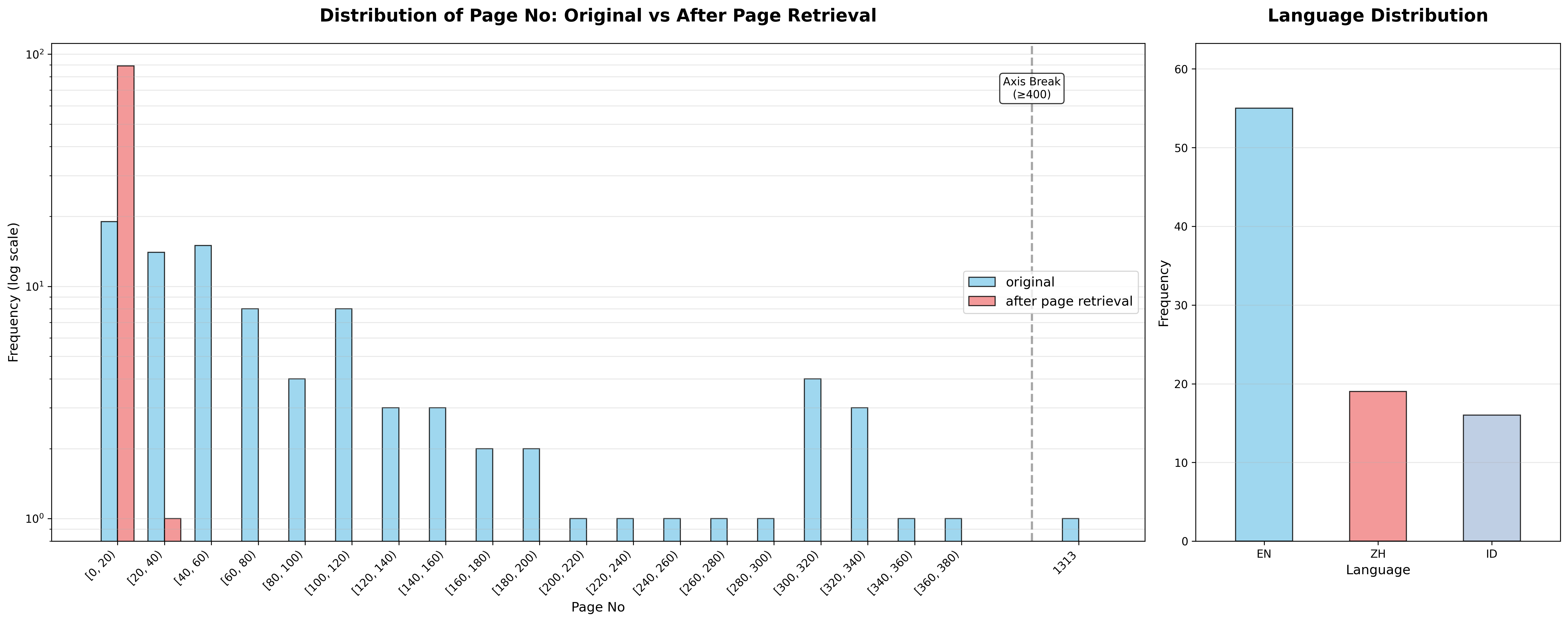 这种多样化的数据集使研究团队能够评估流水线在长文档和多语言条件下的可扩展性,以及OCR、页面检索和信息提取组件的鲁棒性。