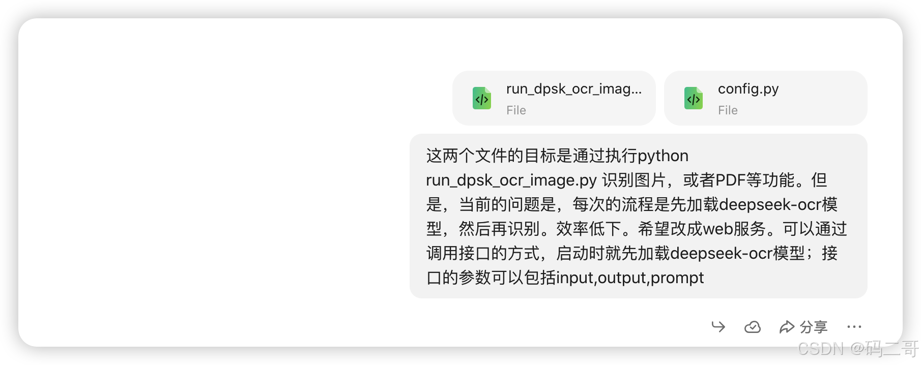 免的每次请求,都得重新加载deepseek-ocr模型。