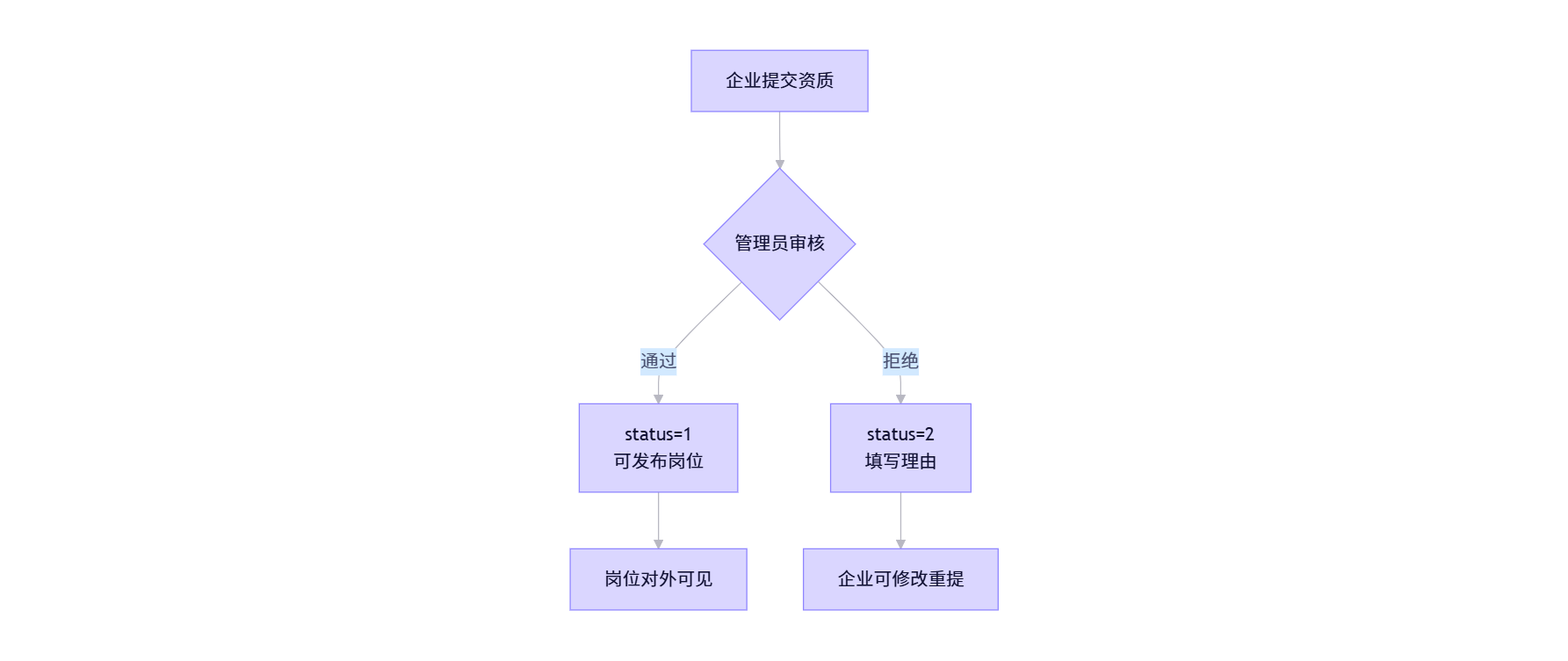 - 轻量级审核机制:将企业资质审核与岗位发布解耦,既保障内容质量,又简化企业操作流程;