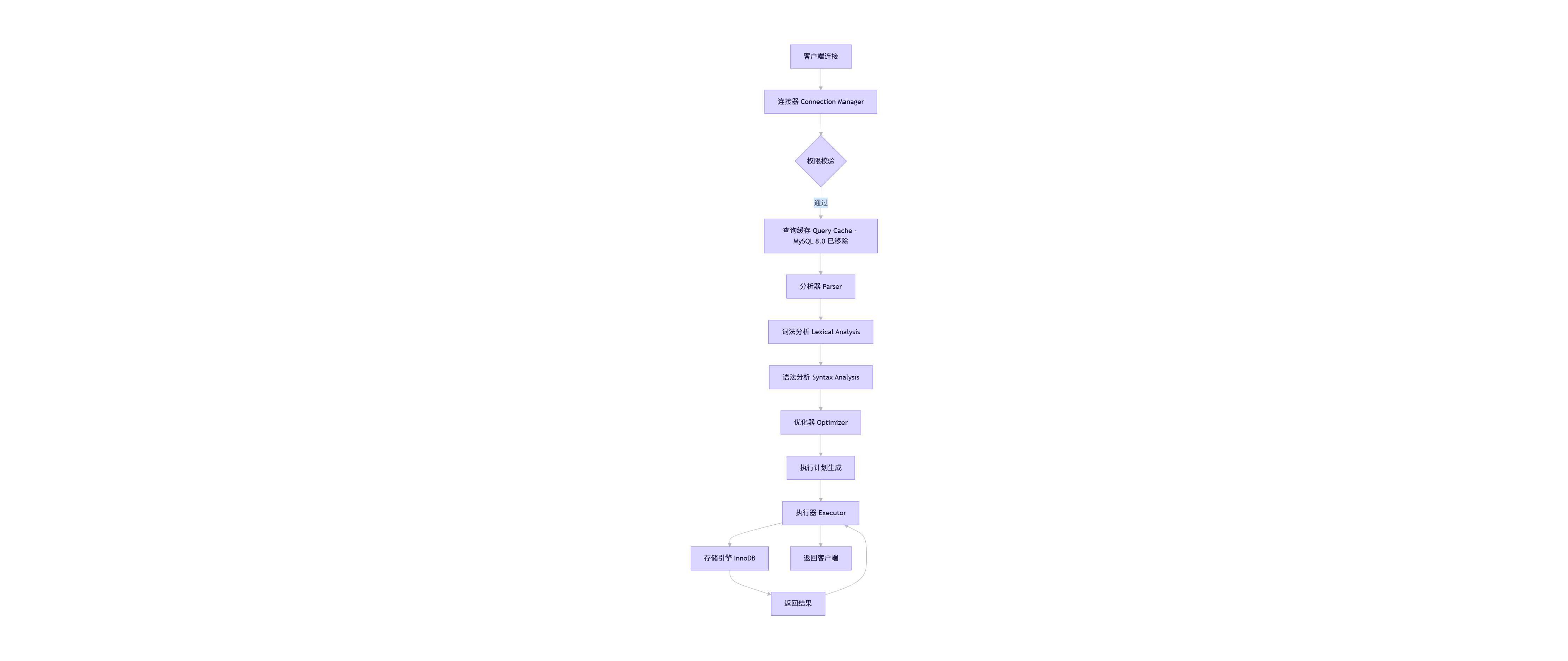 当一条 SQL 语句发送到 MySQL 服务器时,其内部执行流程如下: