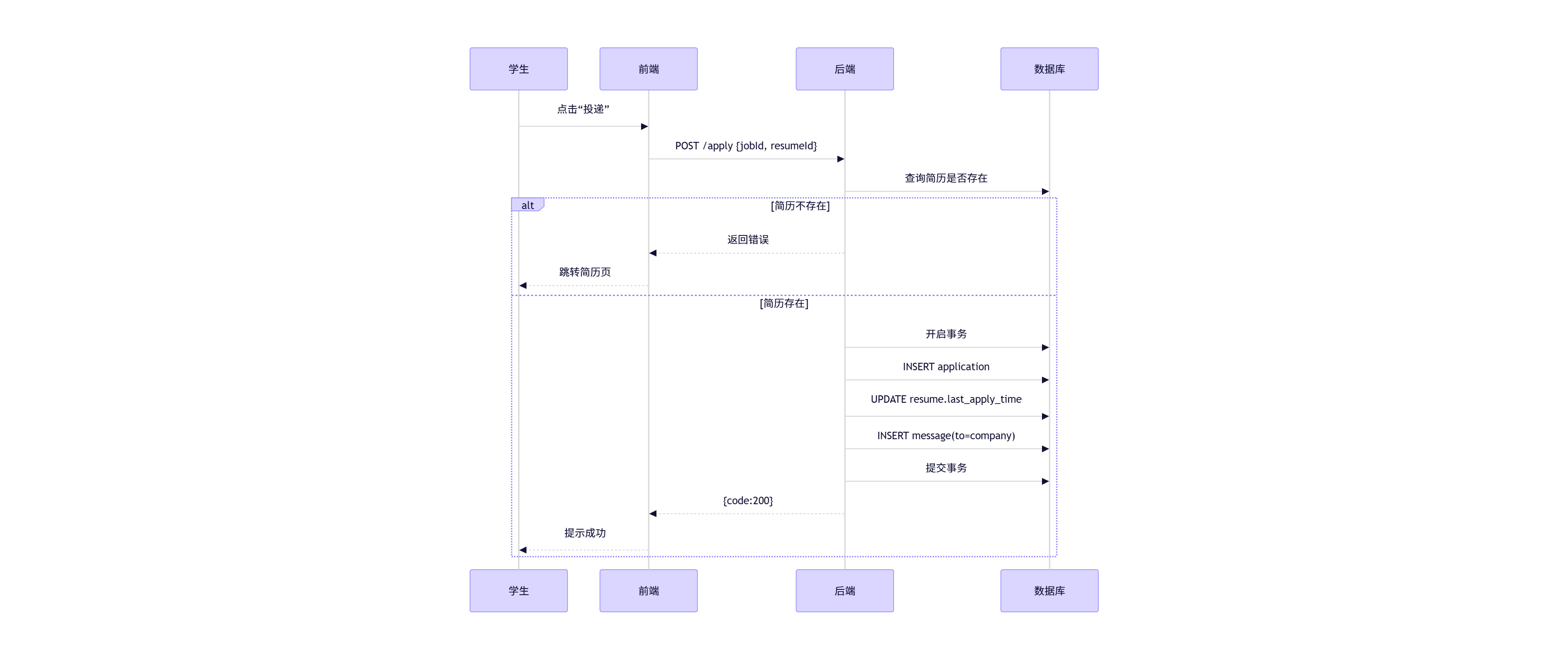 - 简历-岗位强关联:投递时绑定具体简历版本,避免学生修改简历后企业看到不一致内容;