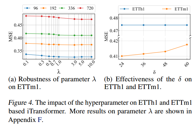 对于ETTh 1,基于傅立叶的补丁长度小于δ,增加δ不会影响性能。