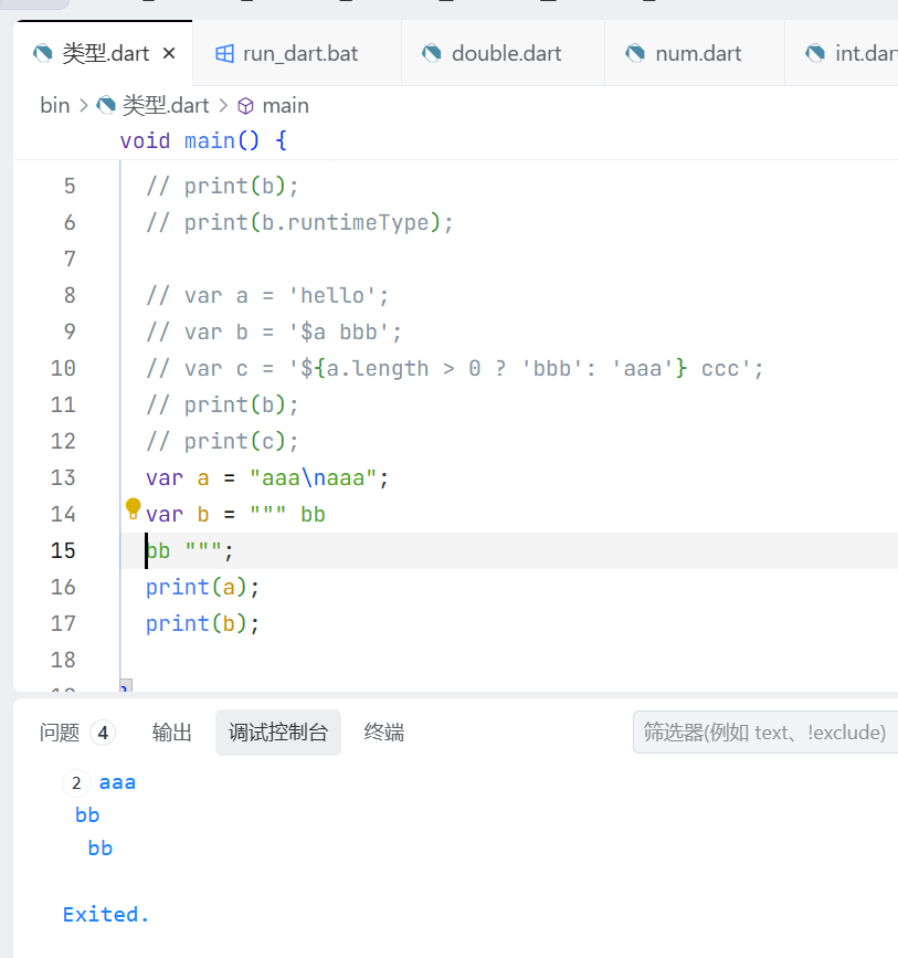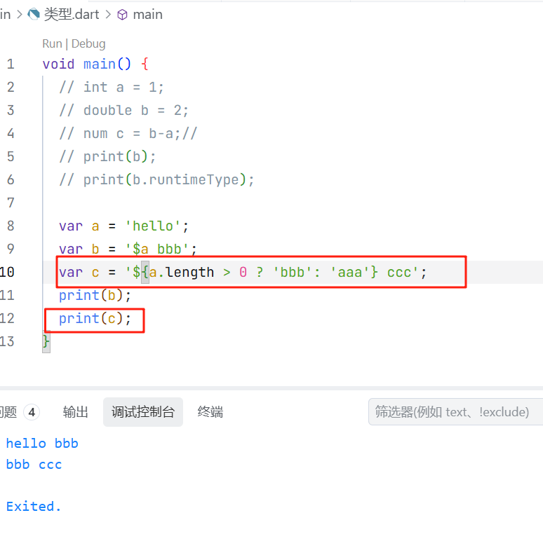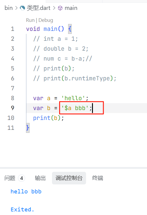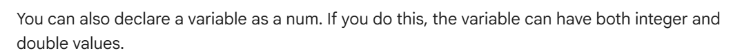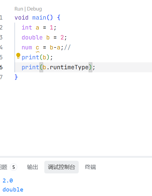 在实际开发中,我们也可以直接使用num来定义数值,num就既可以是int,也可以是double,这取决于他的值到底是什么。