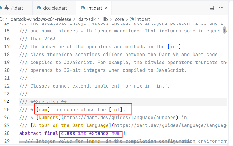 可以看到int类继承自num,接下来我们去看看num