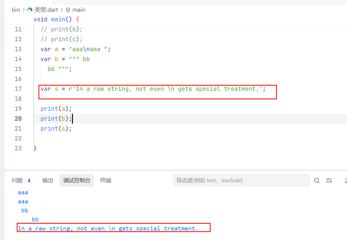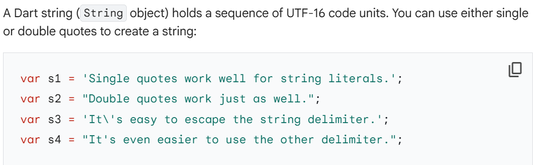 这块主要是说dart使用的是utf-16的字符编码,讲解了如何在dart中使用UniCode编码,看下面的例子: