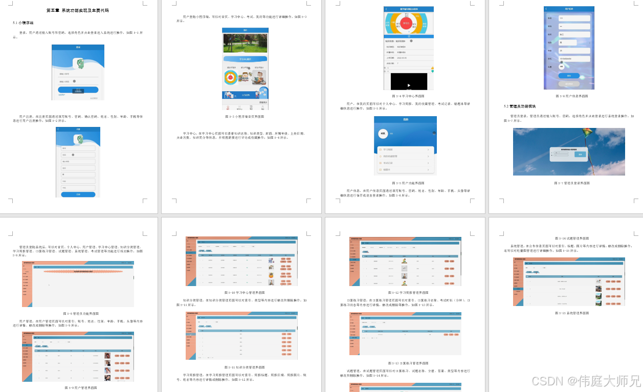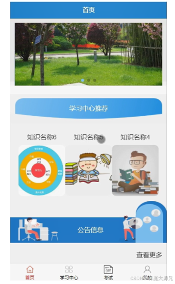 用户登陆小程序端,可以对首页、学习中心、考试、我的等功能进行详细操作,如图5-3所示。