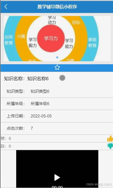 学习中心,在学习中心页面可以查看知识名称、知识类型、封面、所属年级、上传日期、点击次数、知识简介等信息,并根据需要进行评论或收藏操作;如图5-4所示。