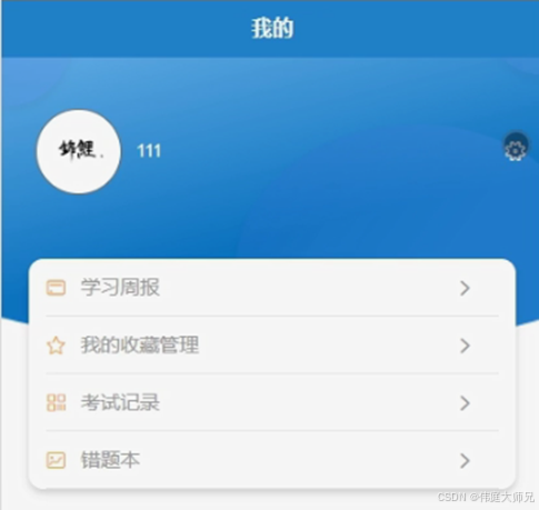 用户,在我的页面可以对个人中心、学习周报、我的收藏管理、考试记录、错题本等详细信息进行操作,如图5-5所示。